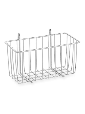金屬帶雙掛鉤的小掛籃,拆卸方便,實(shí)用度高,用于盛放各類日用品,雜物等。適用各類型的架子。